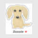 Cute Cartoon Wiener Dog Sticker. Stick this adorable Doxie vinyl decal to your laptop, phone, notebook, water bottle, guitar case or even your car. These durable vinyl Dachshund stickers are waterproof and fade proof. A cool design for dog lovers, dog moms, dog dads, particularly anyone who loves a long haired English cream standard or miniature mini Dachshund puppy. Visit Jenn's Doodle World for even more dog breed stickers and gifts.