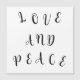 Cute script font words love and peace on a plain colour background.