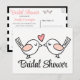 Set the fun tone of your bridal shower with this cute hand drawn cartoon pink and white kissing lovebirds postcard invitation. Your party information is printed on the back in complementary pink script and easy-to- read bold black fonts.