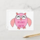 This cute postcard features a cute cartoon of a pink owl with sleepy eyes, a small beak and cute little feet. There is bright pink text inside the owls tummy that says, “Owl Always Love you”. This is the perfect gift for showing someone special how much you love them.