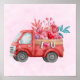 Cute Love Truck Carrying Hearts & Flowers Poster