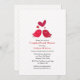 An adorable pair of birds, nuzzling next to each other, with three red hearts. The background has a pale, pink-heart, allover print.