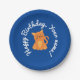 These customisable birthday paper plates feature an adorable orange kitten on a vibrant blue background, making them perfect for cat lovers and animal enthusiasts. Add a touch of fun and cuteness to any celebration with these unique plates. You can easily edit and replace the simple white handwritten text to personalise them for your special occasion, whether it’s a birthday, baby shower, or other festive event. These charming paper plates will make your party stand out and delight guests, adding a playful and whimsical touch to your table setting.