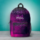 Cute magenta black faux glitter monogram Personalised Backpack. To make it extra special, it is also monogrammed and personalised with name or initials or any text you like, click the "customise further" link and use the design tool to modify the design if you like.