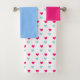 Cute Magenta Red & Light Blue Hearts Bath Towel Se
