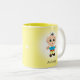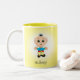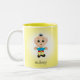 Modern cute elf on light yellow background Mug. Name can be personalised.