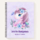 Spiral notebook with an adorable image of a sweet baby unicorn head portrait. A gentle butterfly visiting, fluttering near her nose. A bouquet of flowers around her neck complete this very cute design.