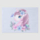 Tissue paper with an adorable image of a sweet baby unicorn head portrait. A gentle butterfly visiting, fluttering near her nose.  A bouquet of flowers around her neck complete this very cute design.