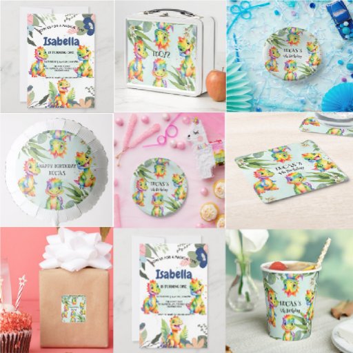 Cute Magical Rainbow Dinosaur Happy Birthday PartyDesigned by F1 H