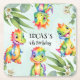 Cute Magical Rainbow Dinosaur Happy Birthday Party Square Paper Coaster