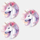 Cute watercolor unicorn with pink flowers, floral decorations.