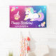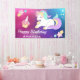 Cute birthday party banner for a unicorn themed birthday party. Customise it with your child's name.