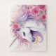 Cute watercolor unicorn with pink flowers, floral decorations.