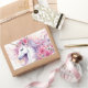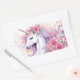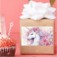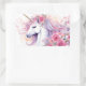 Cute watercolor unicorn with pink flowers, floral decorations.