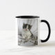 Cute Maine Coon kitten with feathers mug