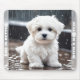 Cute Mouse Pad featuring an adorable watercolor dog Maltese puppy in the rain. Makes a cute personalised stocking stuffer or birthday gift for kids and all the dog lovers. Easily personalise the text or leave it blank. - Kate Eden Art
