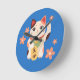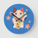 Keep time with charm and good fortune using this Japanese Maneki Neko round clock. Featuring one large hand-drawn lucky cat, it brings joy, balance, and positivity to any room decor.