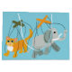 This personalised gift bag features a collage of marionette puppets with three puppets on the front and two more on the back. Your message appears in dark green lettering above the cute cartoon animal marionettes on the front.