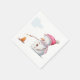 Minimalist party napkins with illustration of a snowman roasting marshmallows. Illustrated and designed by Patricia Alvarez.