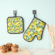 Cute Mediterranean Summer Lemon Fruit Art Pattern Oven Mitt & Pot Holder Set