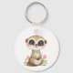 Cute Meerkat and Flowers on White Key Ring