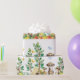 Sweet Mama meerkat with her baby meerkats. Surrounded by their rock den and tropical flowers and greenery. Adorable and fun for girls or boys celebration.