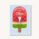 Cute Melon Popsicle Girl Seven Birthday Invitation.
