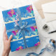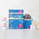 Cute custom mermaid wrapping paper that features an adorable purple haired Hispanic girl with a cool teal tail swimming next to beautiful coral in the ocean. Cool summer birthday gift wrap for a pool party or beach girl.