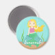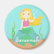 Add a touch of fantasy and fairytale to your little one's world with this cute mermaid from the ocean. The mermaid is sitting leisurely on a rock waving to you. Her blonde hair is swaying in tandem with the water currents and she has a starfish pinned to her hair as an accessory. A colourful and attractive design for girls who love fantasy, mystical, fairytale, under the sea, underwater themes. Personalise easily with child's name to give her an unique gift.