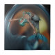 A cute aqua-haired mermaid swims joyfully against an abstract background that resembles a wave.