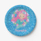 Cute Mermaid Pink Blue Glitter Personalise Paper Plate