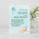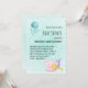 A baby shower invitation with a cute watercolor illustration. A mermaid with long blonde hair, purple scales and white pearls. A happy floating jellyfish accompanies her. Darling and delightful illustration.