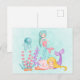 Cute Mermaid Under the Sea Watercolor Postcard