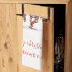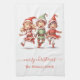 Cute merry christmas 3 elves family name kitchen towel. Personalize text.