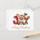 Cute Merry Christmas Calf Joy Santa Hat Holly Star Holiday Postcard