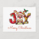 Send Joy & peace to your loved ones with this cute Merry Christmas greeting postcard featuring "joy" written in fancy font and baby reindeer with Santa hat, , holly berry and sitting in place of "O" It has message "Sending you the greetings of the season with all my love and cheers. May the light of Christmas give you peace and happiness.".