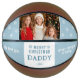 Cute Merry Christmas Daddy Family Photo Basketball. Cute modern and festive design with family photo, "Merry Christmas" text and "We love you" text with white snowflakes. Customise with your names, year and your photo. A perfect gift for a dad for Christmas.