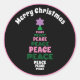 Cute Merry Christmas Pink and Green Peace Tree Classic Round Sticker