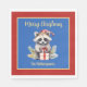This cute Christmas napkin design features a funny and joyful racoon wearing a red and white stocking Santa hat. The racoon is playing with a gift adorned with a red ribbon to add a charming touch to your holiday table or even a Christmas season birthday. Make sure to add your name - just replace the placeholder text. If you don't want any text at the bottom, just delete the placeholder. You can replace the Merry Christmas text with a short greeting, as long as it fits the space.