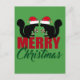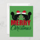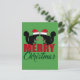 Two cute Christmas squirrels wearing Santa Claus hats and holding candy canes in their hands stand on the words Merry Christmas in red and green. Adorable gift for a kids Christmas or a grown up who likes animal presents.