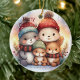 Add a heartwarming touch to your holiday tree with this personalized ceramic circle ornament featuring an adorable woodland family bundled in cozy winter hats and scarves. The soft frosty background and your family name make it a charming keepsake to treasure year after year.
