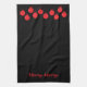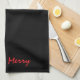 Cute and very merry kitchen towel for the holidays. Red ball ornaments decorate the top - with MERRY MERRY in script font.