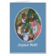 A festive Christmas Card with the greeting in French and a family of cute Wood Mice, decorating their Christmas Tree, with from a hand-painted watercolour design by Judy Adamson.
