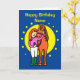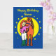 Birthday card featuring a cute cartoon of a girl standing with her pony who has his head on her shoulder. The card is midnight blue with a representation of the moon and stars. Text on the front says Happy Birthday. Easily edit the template text on the front and inside of this card to personalise the card with your own message. Lovely card to send a horse loving girl or woman on her birthday. Thanks for viewing my designs!