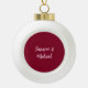 Cute Minimalist Burgundy Red Calligraphy Own Name Ceramic Ball Christmas Ornament