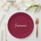 Cute Minimalist Burgundy Red Calligraphy Own Name Paper Plate