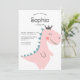 Cute Minimalist Pink Girl Dinosaur Birthday Party Invitation