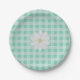 Cute Mint Green Gingham Check Daisy Paper Plates