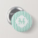 Cute Mint Green Painted Stripes Monogram and Name 6 Cm Round Badge