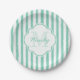 Cute Mint Green Painted Stripes Monogram and Name Paper Plate